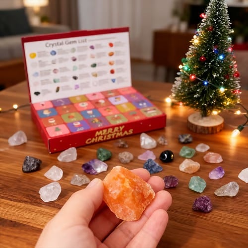 Unlike mass-produced advent calendars stuffed with forgettable sweets, this Christmas Crystal Advent Box contains 24 authentic natural crystals and minerals. Each mornina becomes a mini geological expedition as you discover raw amethyst, polished jasper, or mysterious stones you'll excovate yourself. These aren't manufactured trinkets-they're genuine pieces of Earth's history, each one unique and formed over thousands of years.