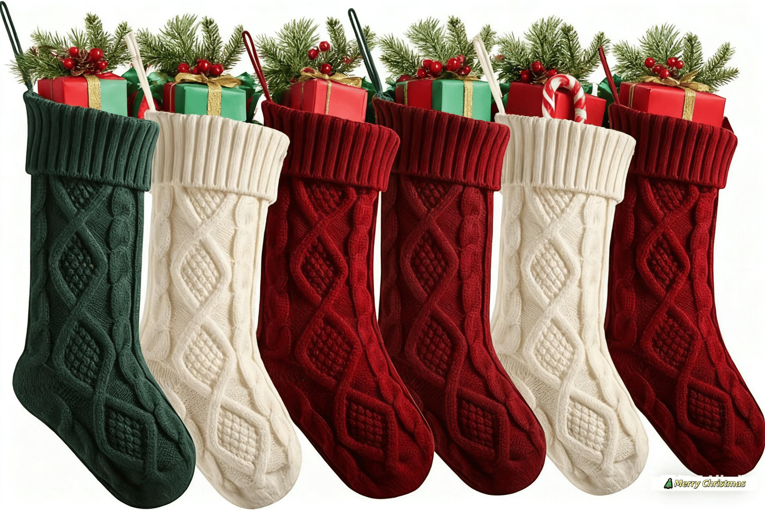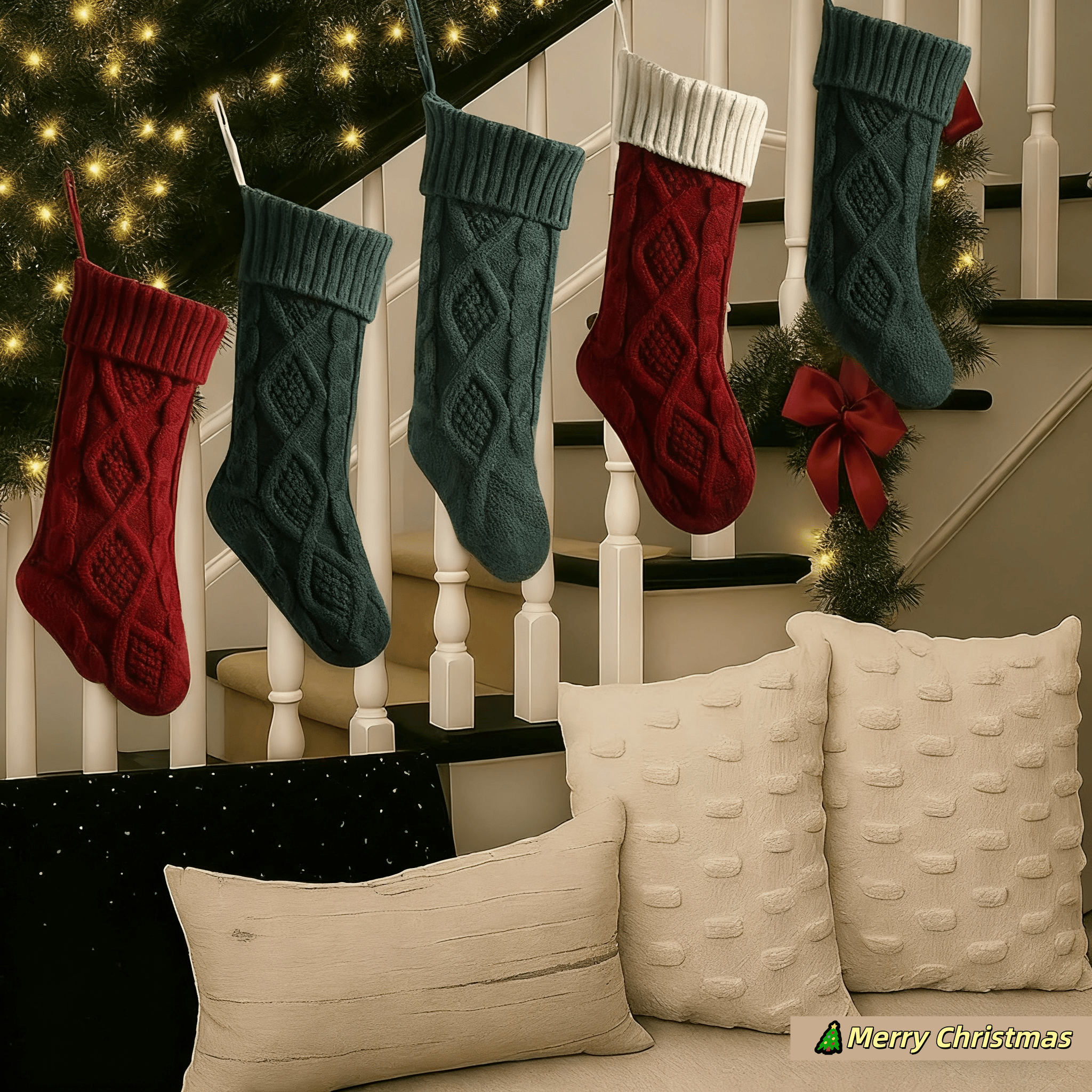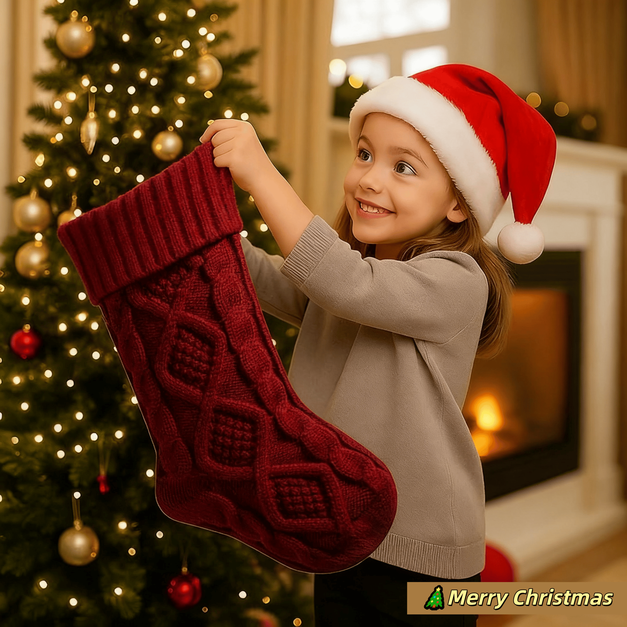 DURABLE MATERIAL: Knitted Christmas stockings are made of 100% premium soft acrylic fabric that is soft, stretchy and durable. The stockings are knitted from a thick yarn for durability and can be used year after year.